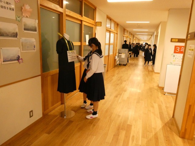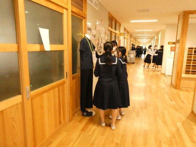 そこで、見本が展示されています。生徒も興味津々で見本を見ていました。