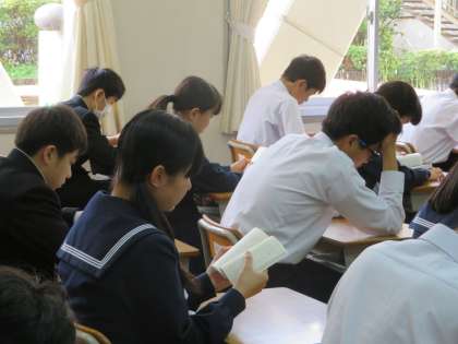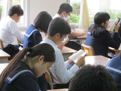 読んでいる本も、読んだページがたくさんたまってきています。本を読んでいる目も、しっかりと活字を追い、集中して読んでいる様子がうかがえます。2年間、短い時間ではありますが、毎日の積み上げの大切さが、生徒の後ろ姿から伝わってきます。