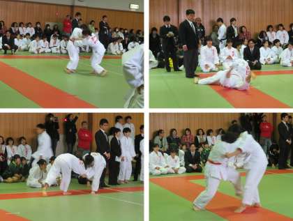 女子は選手3名の団体戦を行い、男子と同じように4つのゾーンのリーグ戦で勝敗を競い合い、上位2位までが決勝トーナメントに出場することができます。本校は、旭南・青山と対戦をしました。一勝一敗で2位で通過し、決勝トーナメントへに出場することができました。柔道部女子のみなさん。決勝トーナメントも、予選リーグの教訓を活かして、頑張れ〜。