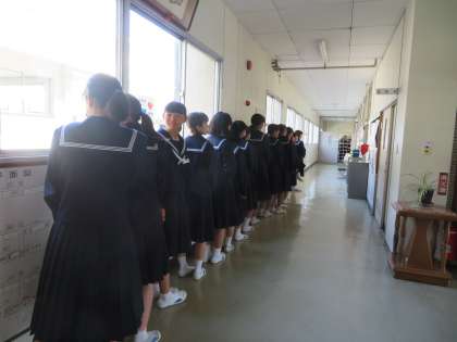 定期健康診断を順次実施しています。本日は、検尿検査、3年生耳鼻科検診と続いています。待機している生徒も静かに順番を待って受診。諸検査において心配な様子がみられ、再検査・治療が必要な場合は、早めの受診・治療へのご協力をよろしくお願いします。