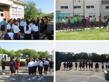 1年生の体験入部2日目となりました。今日は、第2希望の部活動に参加をしました。真っ白な体操服が、太陽にあたり、より白さが際立って見えます。先輩の指導のもと、あいさつから始める部活動もあります。