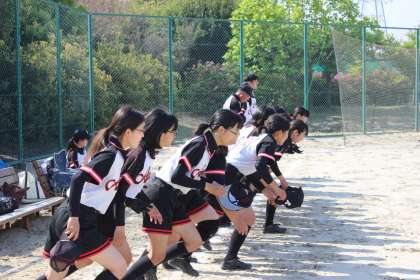 東海市ジュニアスポーツフェスティバルソフトボール大会が、新宝緑地運動公園で9時から開催されました。初戦は、大府中学校との対戦となりました。1回の表にまず4点を先取。その裏に5点を入れられますが、2・3回と連続で4点をとり、3回の表までで12対5と大きくリードします。その後相手にも得点を入れられましたが、13対10で勝利。2回戦進出です。