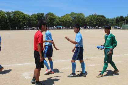 次第にペースを握り、セットプレーから得点を取ることができました。その後は、一進一退の熱いゲーム展開でしたが、見事1点を守り切り、勝利を収めることができました。