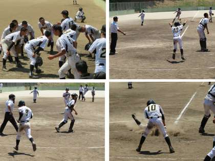 最終回の表は得点を入れられず、裏の相手の攻撃となります。ここで2点を許し、最終回を終えた段階で7対7の同点となり、延長戦に入りました。両チーム満塁にしての攻防で勝敗を競いました。8回の表に2点とると相手も2点取り、互角の争いが続きました。そして、延長9回の表で11対9となりましたが、後攻で3点目を許してしまい、11対12で惜敗となりました。