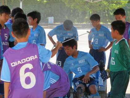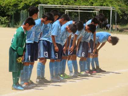 後半の攻撃の中では、あと少しでゴールが決まる場面が何度もありました。しかし、残念ながら得点することはできませんでした。試合終了のホイッスルが鳴った時点で2対0となり、惜敗となりました。勝利はつかむことはできませんでしたが、阿中魂である「全員サッカー」は、健在でした。選手のために飲み物などの準備をする部員、補助役員として精一杯頑張る部員。こうした一体感のあるサッカーは、健在でした。