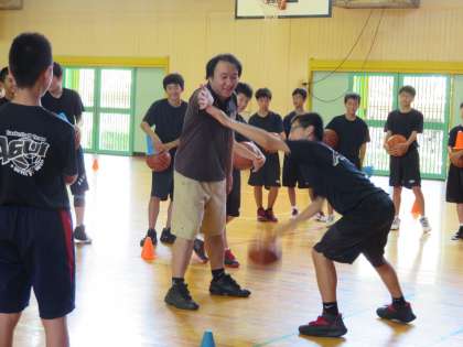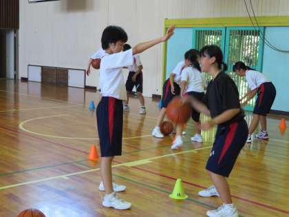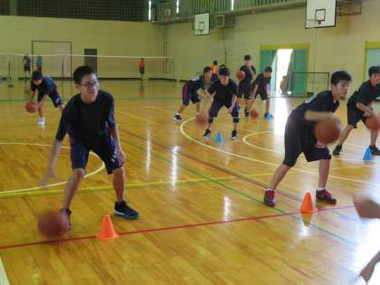 新チームが誕生した部活動。昨日まで2年生が職場体験学習であったため、全員がそろう日は少なかったのですが、1年生はだんだん活動にも慣れてきています。バスケットボール部では、基本練習に励む部員の姿があります。活動を楽しんでいる雰囲気が素敵でした。