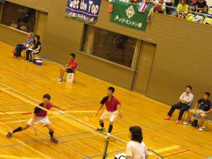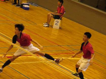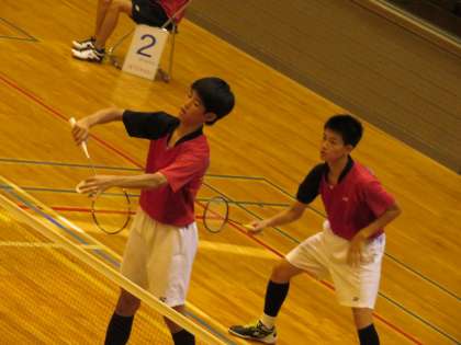 試合は、予定していた時間より少し遅れて、11時ごろから始まりました。強豪相手に、第一セットは8対7とリードする場面もありました。しかし、後半相手にリードを許して、第一セットを落としました。第二セットも、最後の最後まで粘り強く闘いましたが惜敗となりました。敗退とはなりましたが、強豪相手に善戦した二人に、観客席で応援をしてくれた生徒、保護者の方から温かい拍手が送られました。