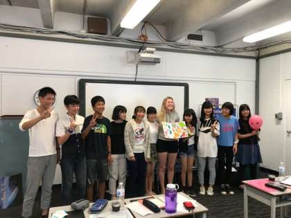最後に代表生徒がお礼のメッセージを伝え、色紙を渡しました。コートニー達が大喜びしてくださり、生徒のみんなもとても嬉しそうでした。