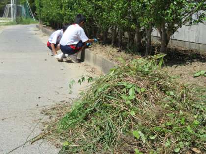 全校出校日前の除草作業