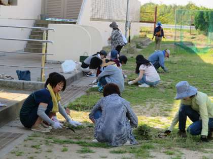 本日は夏休み最後の全校出校日、PTA合同草刈りの日です。保護者の皆様方には、日曜日の早朝にもかかわらず、多くの方々が除草作業に参加していだけました。また、草刈り機で西グラウンドを中心に除草いただいたり、トラックで刈った草を集めてくださったりしていただけました。