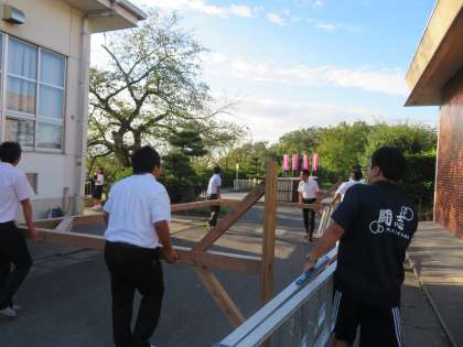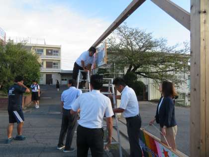 桜輝祭当日を迎えました。早朝から、スローガンを掲げる門の設置に、特別活動部部員、有志職員が集まり準備です。この二日間どのような感動や成長があるか、とても楽しみです。いよいよ、桜輝祭の幕開けです。