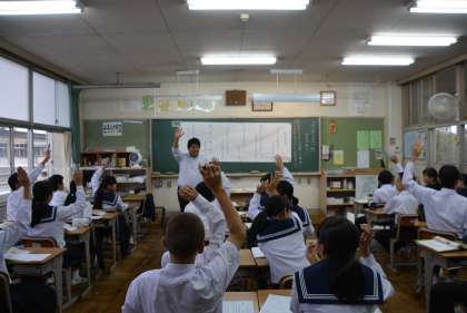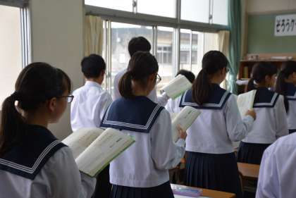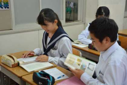 1年生国語「いにしえの心に触れる(蓬萊の玉の枝「竹取物語」から)」の単元で公開授業を行いました。生徒にとっては馴染みのある「かぐや姫」。古文独特の言い回しを、個人やペアで音読をしながら、古文特有の言葉使いやリズムを味わいました。また、古文と現代語訳と比べることで、共通点や違いから古文のおもしろさに触れました。