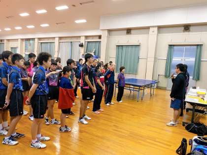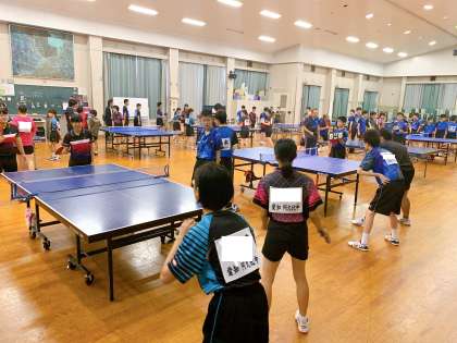 ダブルスのトーナメントと団体のリーグ戦を行います。高校生・大人にも一歩も引かない姿が見られ、日々の練習の成果を感じることができました。