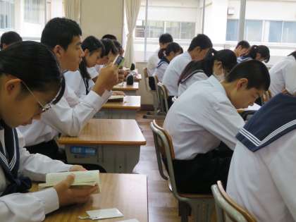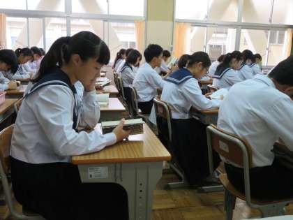 生徒の朝の活動は、読書から始まります。生徒自身が選んだ本と向き合い、さまざまな本の世界との出会いがあります。落ち着いた雰囲気で、今週もスタートしました。