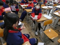 1年生の自画像の作品づくりが、着々と進んでいます。黒い台紙に輪郭を書き込み、いよいよ着色です。絵の具ではなくて、特別な用紙をこすることで、その色が台紙についていきます。こすって着色することで現れる偶然の形や色合いが、自画像をよりいい作品に仕上げていく表現力にもなっていきます。完成する日が楽しみです。