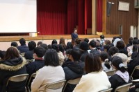 美術で制作した作品が渡り廊下に展示されていました。コロナ禍で、保護者の方には、なかなか学校に来てもらえませんので、写真で雰囲気だけでもお知らせします。