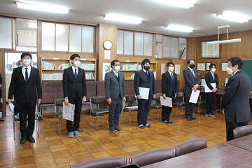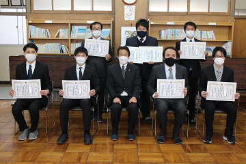阿久比町教育委員会奨励賞の表彰がありました。部活動や作品応募で優秀な成績を収めた生徒の指導を行ったことに対する表彰です。