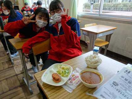 今日も楽しく給食をいただいていました。3年生の皆さんは、あと何回給食がいただけるのでしょうか。よく味わってくださいね。