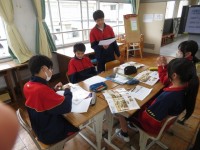 説明文の要約を240文字以内にまとめるという学習をしていました。自分で書いた要約文をタブレットで撮影して、先生に提出し、それをみんなで評価していました。前の人の要約文を読んで、後ろの人が評価するという内容でした。ICT機器のお陰で、他の人の意見や作品を学級全体ですぐに見られるというのは、とても便利だと思いました。
