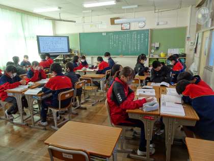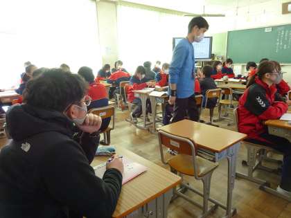 他の学級の先生が生徒と一緒になって参観していました。先生に聞くと,道徳の勉強がしたいから生徒目線で授業を受けていますと答えられました。先生も日々勉強しています。