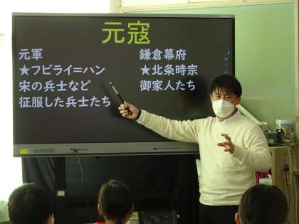 元寇のところを学習していました。先生が電子黒板を使って、教科書には書かれていないようなことを解説してくれるので、思わず集中して聞きました。2度の蒙古襲来に日本は勝ったのですが、兵器や武装についての説明もしてくれました。元の火器「てつはう」は、人が投げるのでそう遠くには投げられなかったそうで、長弓で馬に乗って戦った鎌倉武士にはあまり効果がなかったようです。歴史は面白いですね。もちろん、これからいろいろなことがわかってくると、歴史はまた塗り替えられるのでしょう。それがまた面白いですよね。