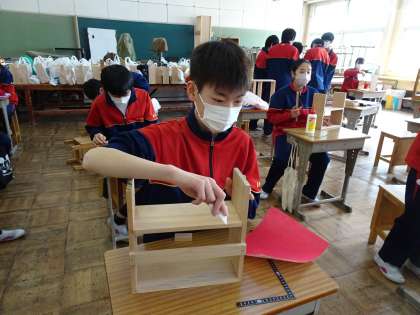 今日も木工室で、ラックつくりの授業を参観しました。モノを作るというのは楽しいものです。平らな板から立体のラックが出来上がる、それも世界に一つだけの自分のラック。みなさん、丁寧にかつ慎重に取り組んでいました。完成が楽しみですね。