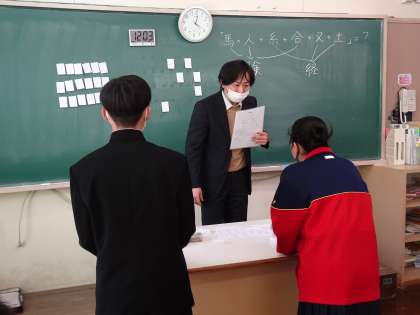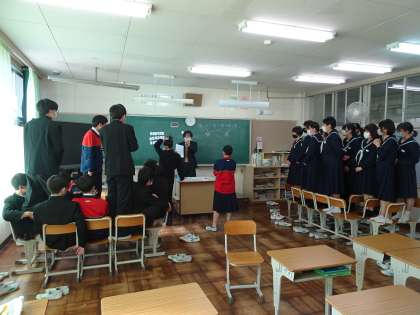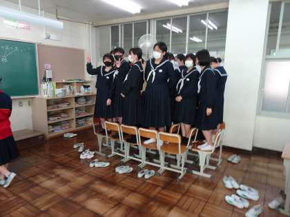 この学級では、高校にまつわる問題をクイズにしていました。椅子の上に立っているのは、陣地に座るか立つかするそうで、女子は全員?立っていました。とても楽しそうでした。