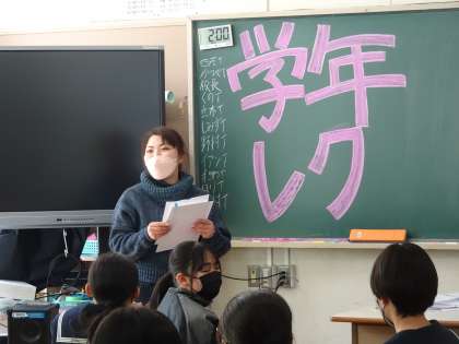 この学級は、前半生徒にまつわる問題を先生が出して、生徒が当てるというゲームをやっていました。