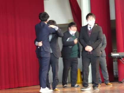 卒業式の練習後、3年生から先生たちへサプライズ、歌のプレゼントがありました。
