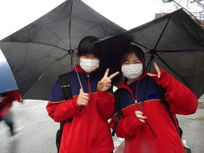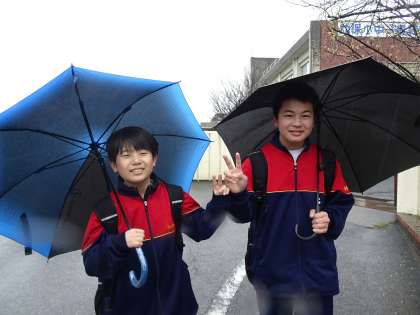 今日は朝方雨が降っていて、足取りも重そうに登校していましたが、カメラを向けると笑顔で応えてくれました。素敵な笑顔をありがとうございます。