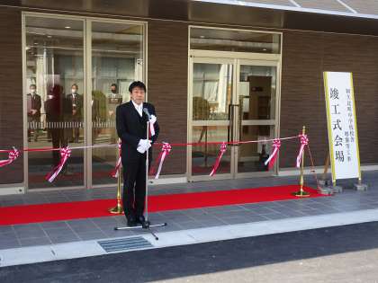 芝生グランドだったところに増築中の校舎が完成し、竣工式が行われました。