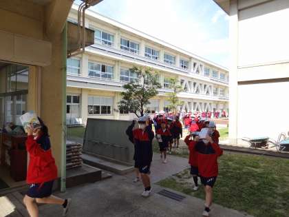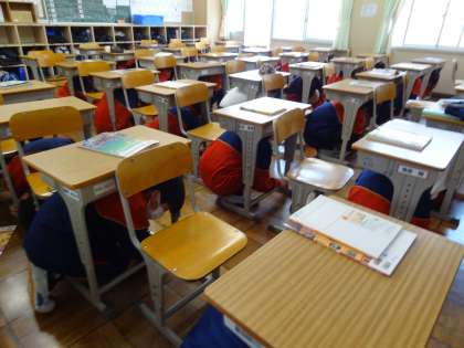 最近、石川県や千葉県で地震が連続しています。この地方では、最近大きな地震が起きていないことから、いつ起きてもおかしくない状況の中、地震に備えて訓練をしておくことは、とても大切なことです。今日の訓練は、校舎内から、落ち着いてなるべく早く避難することを目的に訓練を行いました。静かに落ち着いて行動できました。自分の命は自分で守る、そんな気持ちをもって行動したいものです。