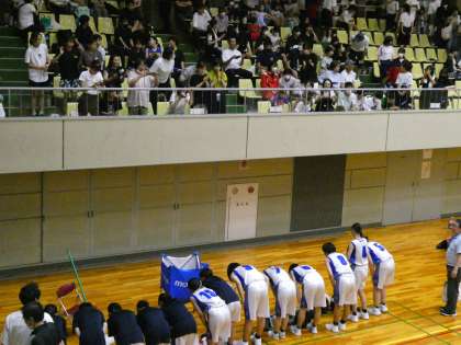 試合終了の瞬間です。抱き合ってお互いの奮闘を称えあっていました。試合終了後、応援してくれた観客席にも一礼し、観客席から健闘を讃える大きな拍手が湧き起こりました。まさにブラボーな瞬間でした。
