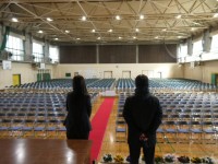 水泳の授業の様子です。いくつかの学級がコースを分け合いながら授業を進めています。安全に、かつ、効果的な指導を心がけています。